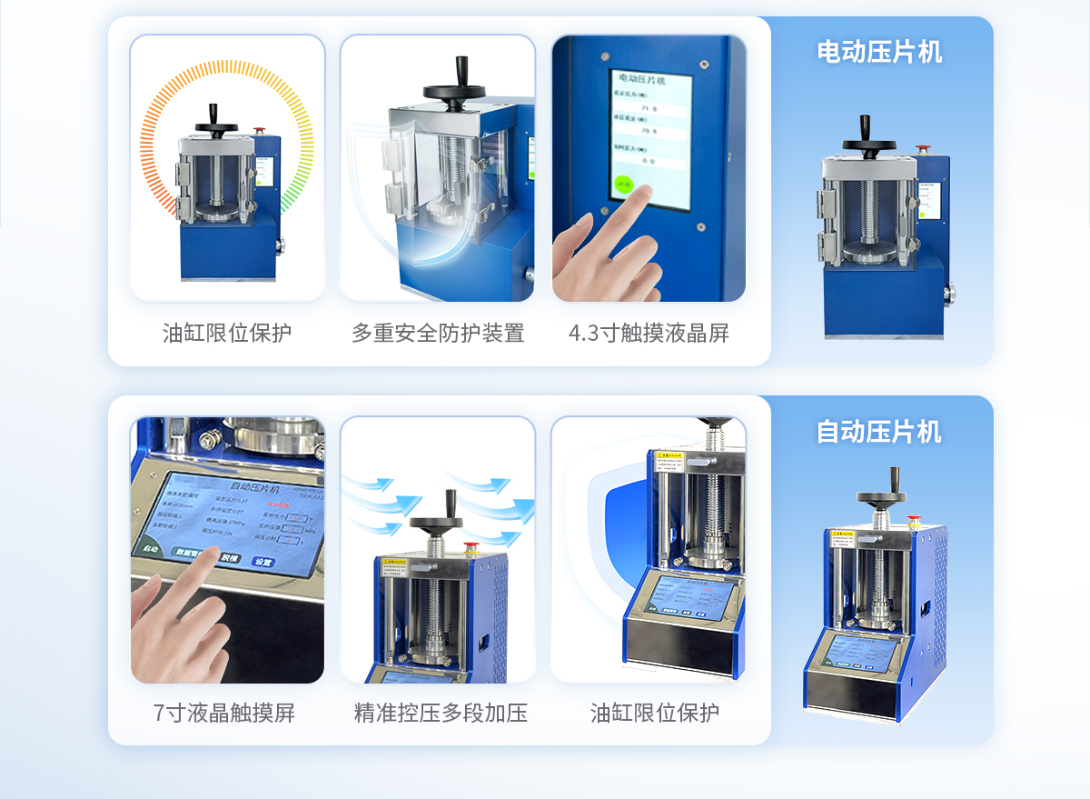 該機(jī)是我司結(jié)合現(xiàn)有壓片機(jī)在高校老師的提議和支持下,開發(fā)出的第三代自動款壓片機(jī)。本次升級進(jìn)行了多項(xiàng)優(yōu)化和改進(jìn),配置7寸觸摸液晶屏,程序控制在升級,實(shí)現(xiàn)了精準(zhǔn)控壓,滿足了客戶多段加壓的需求,另外還增設(shè)了很多安全配置,適合**實(shí)驗(yàn)室使用。